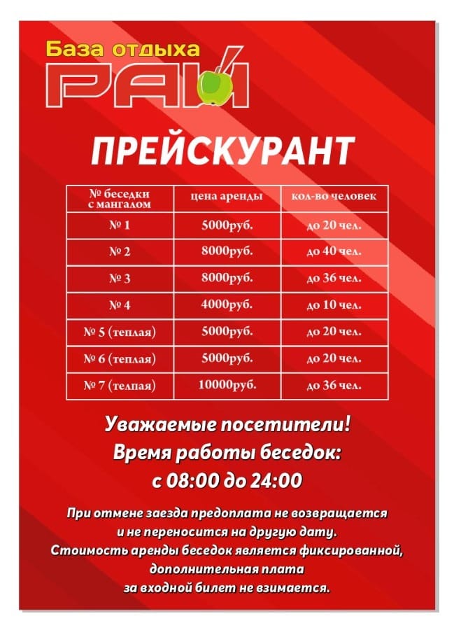База Отдыха «Рай»! Мы рады приветствовать жителей и гостей города!